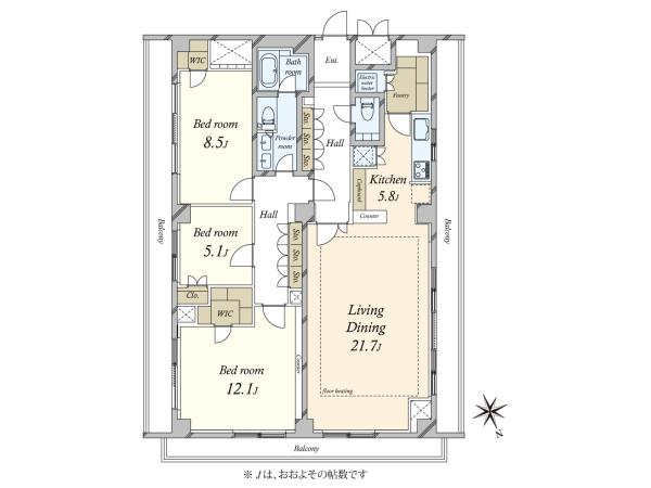| Floor Plan | 3LDK+2WIC | ||