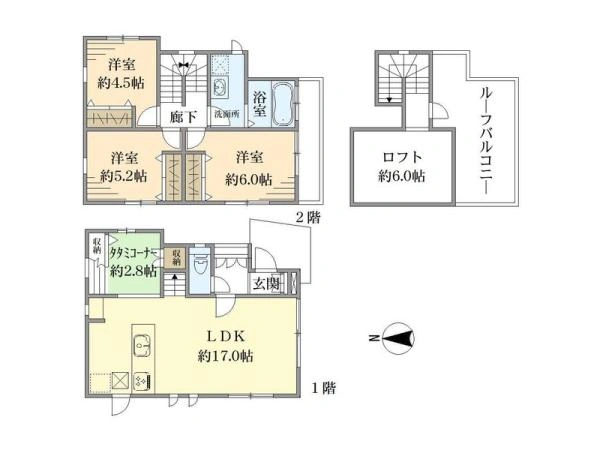 3LDK / 南東向き / ロフト・ルーフバルコニー付き戸建