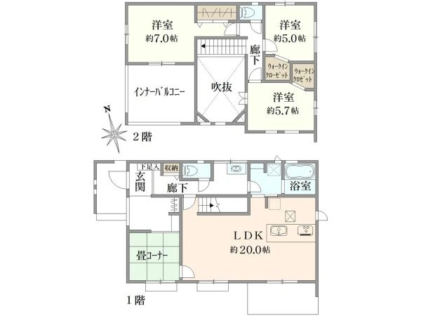 120.89m2(36.56坪)(公簿) 1階:65.41m2 2階:55.48m2 |