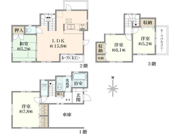 96.17m2(29.09坪)(公簿) 1階:31.38m2 2階:39.48m2 3階:25.31m2 |