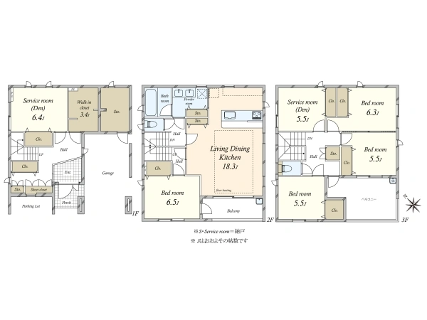 ■洋室×3部屋(約6.3帖・約5.5帖・約5.5帖)
