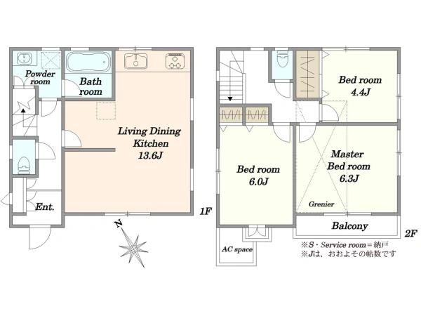 72.8m2(22.02坪) 1階:36.13m2 2階:36.67m2 |