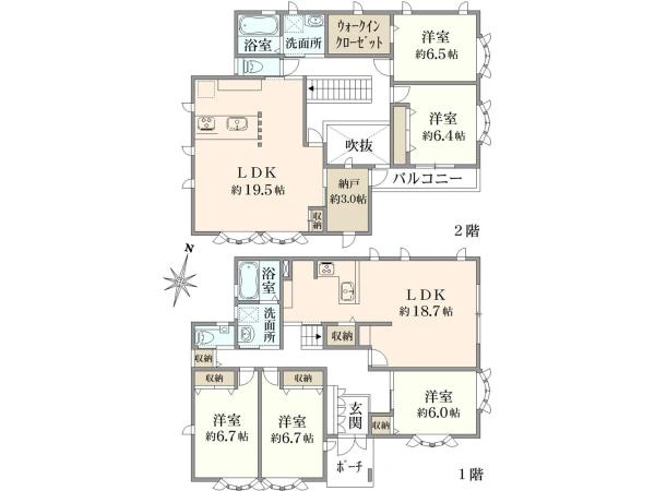 ◆1階約18.7帖、2階約19.5帖のゆとりあるLDK