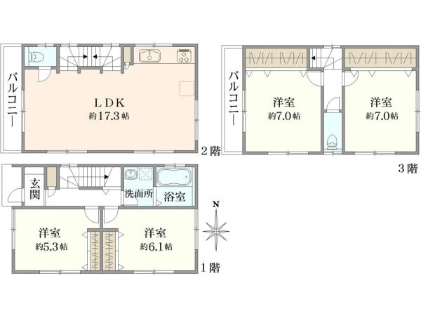 100.6m2(30.43坪)(公簿) 1階:34.36m2 2階:33.12m2 3階:33.12m2 |