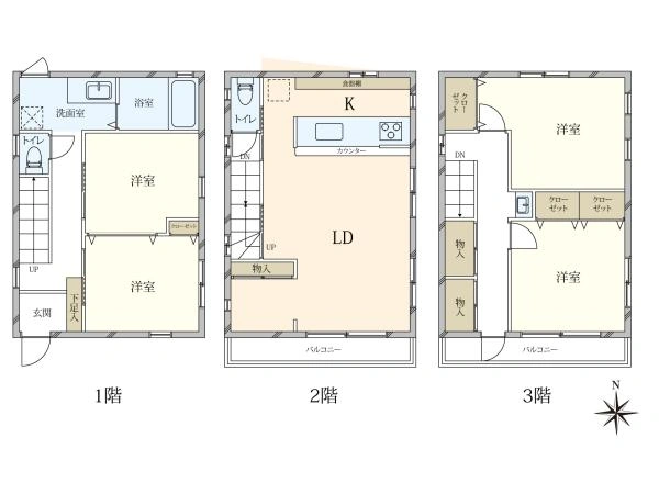 1階)40.98m2、2階)40.98m2、3階)40.98m2、