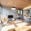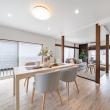 LDKのデザインと空間です。戸建とは思えないスタイリッシュなデザインにもかかわらず、全く飽きがこず落ち着く空間で...