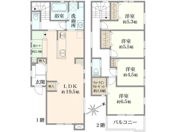 建物面積 109.54m2(33.13坪) 1階:55.99m2 2階:53.55m2