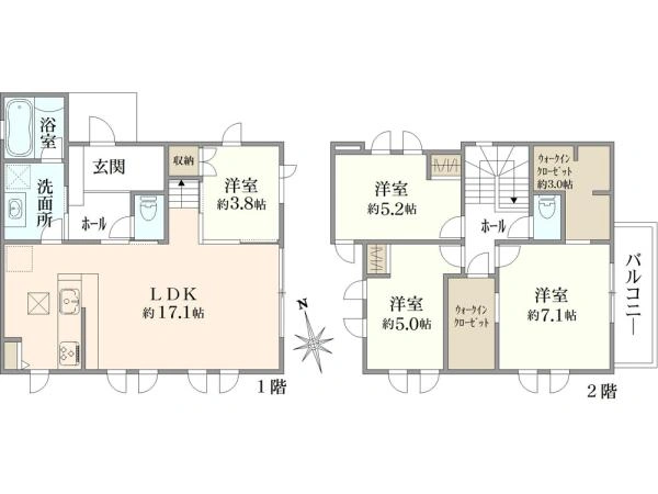 3LDK+S / 土地 56.17m2