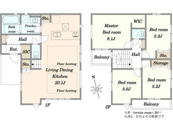 98.53m2(29.8坪) 1階:49.68m2 2階:48.85m2 |