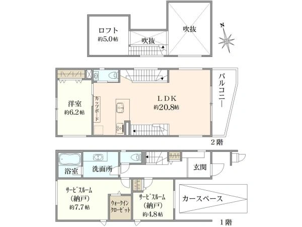 ●木造3階建1LDK+2S+WIC+ロフト