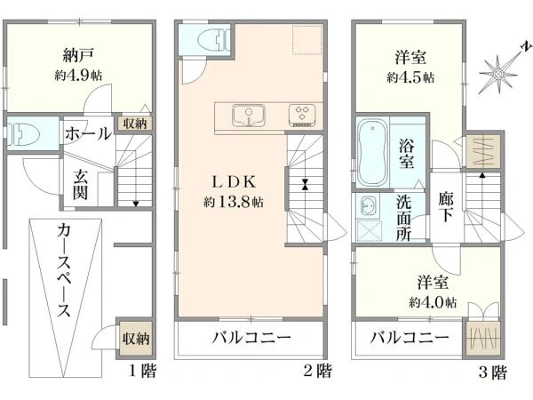 ♢木造3階建て×2SLDK×81.14m2♢