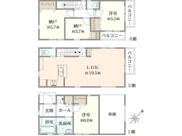 3LDK / 土地 51.8m2