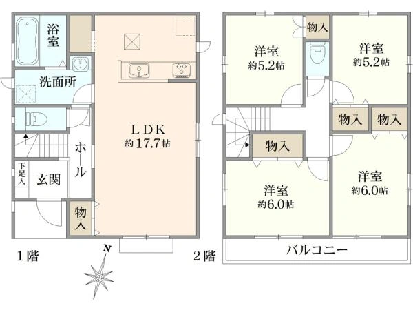 ★2F全洋室は約5.2帖以上