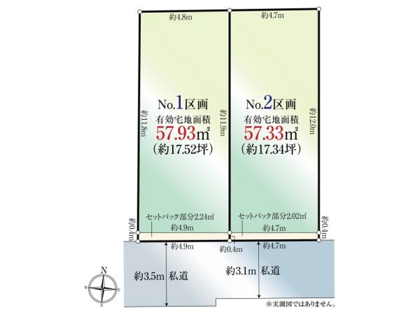 | 備 考 | 全2区画今回販売2区画(NO.1区画) / ●有効宅地面積57.93平米●南側私道幅員約3.1m~約3.5m●私道負担面積約179平米別有●私道持分1/20●セットバック面積約2.24平米要●第二種特別工業地区●日影規制5h-3h/4m●景観計画地区(下町水網地域)●分筆登記時(引渡時)、土地面積に多少の差異が生じる場合があります●ガス・水道・汚水・雑排水:敷地内引込無、引込後引渡●写真撮影:全て2025年12月 | ||