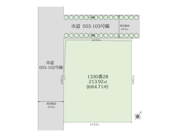 南西5m公道 接面16.1m・北西4.5m公道 接面13.2m | ||