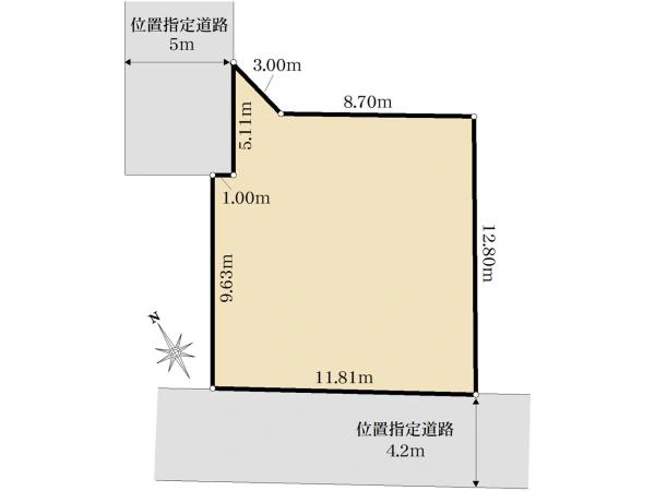 北西5m私道 接面5.1m位置指定・南西4.2m私道 接面11.8m位置指定 | ||