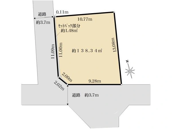 北西3.7m公道 接面11m位置指定・南西3.7m公道 接面9.7m | ||