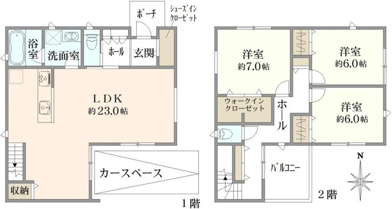 建物面積:106.19m2(1F:55.27m2、2F:50.92m2)