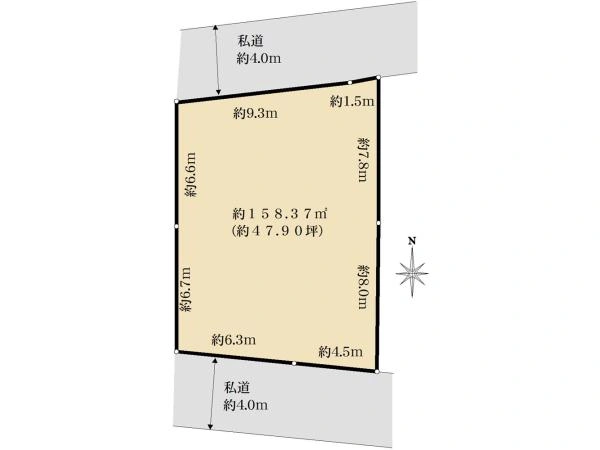 南4m私道 接面10.9m・北4m私道 接面10.8m | ||
