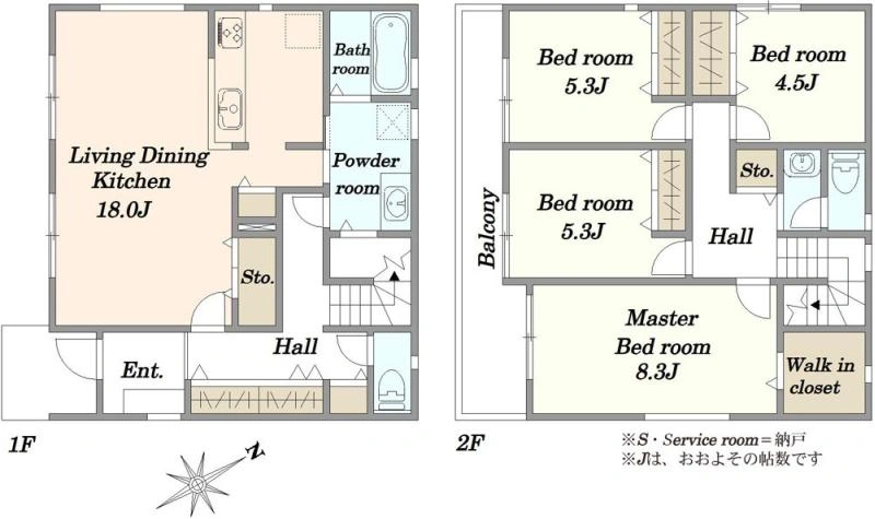 建物面積:1階:49.68㎡/2階:49.68㎡ (延床面積:99.36㎡)