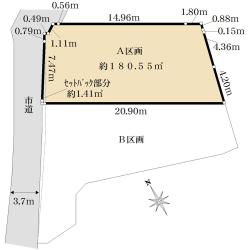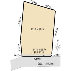 ★前面道路はセットバック済で市に移管済・西側公道幅員約3.04mとなります。