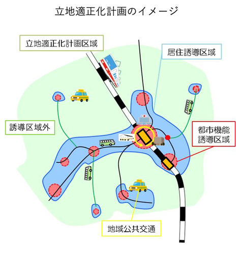 立地の将来性を見る一つの方法が「立地適正化計画」の確認です。人口減少や高齢化が進行する中、都市の持続可能性を高めるために生活利便性や都市機能を集約する「居住誘導区域・都市機能誘導区域(=コンパクトシティ)」を定めた計画です。