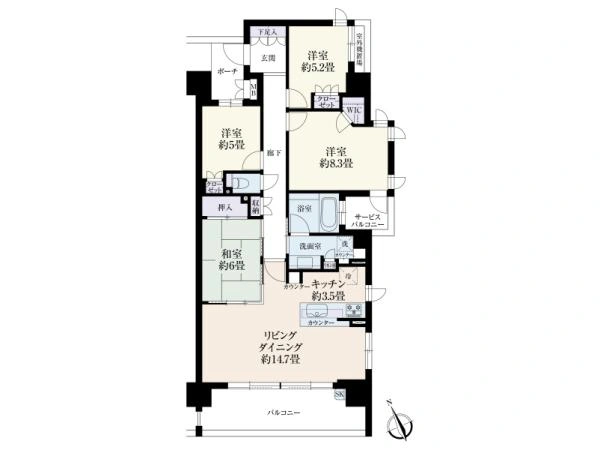 備 考 ■SRC・RC造■間取り:4LDK+WIC / ■サービスバルコニー面積:3.28平米(約0.99坪)■室外機置場面積:1.47平米(約0.44坪)■ポーチ面積・使用料:3.96平米(約1.19坪)・無償