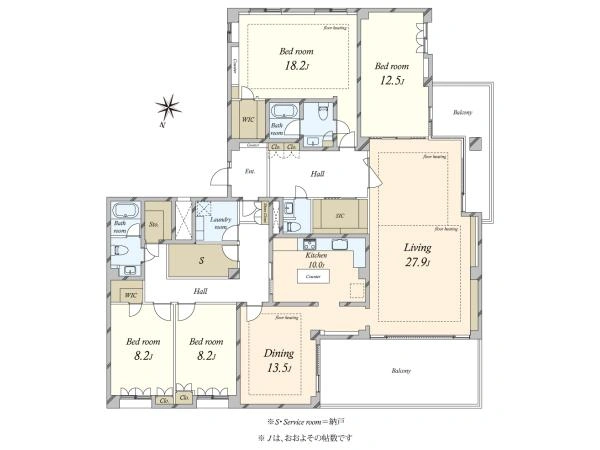| バルコニー面積 | 42.5m2 | 向き | 北西 |
