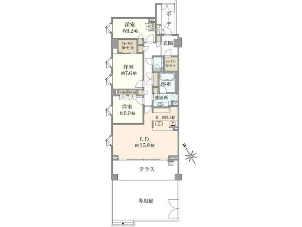 南西向き×1階部分×専用庭 96.56m2 3LDK