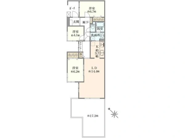 ⇒洋室の広さは使いやすい約4.1帖~約6.7帖