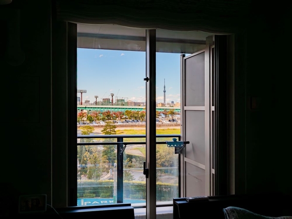 リビングは勿論、ワイドスパンの4部屋から木々の緑と東京スカイツリー、シティビューが臨めるリゾート地のような眺望でした。(季節・天候によります)