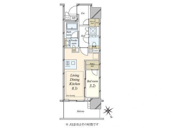 | バルコニー面積 | 7.1m2 | 向き | 北東 |
