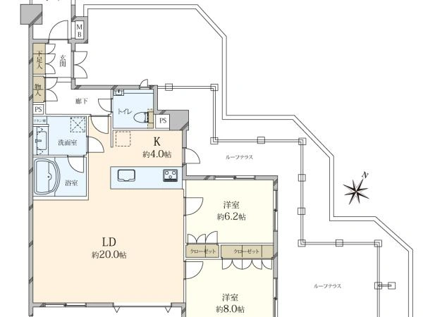 ルーフテラス付き角住戸
