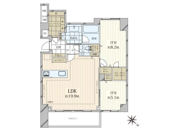 ☆19.9帖のLDK×ウォークインクローゼット・シューズインクローゼット付2LDK