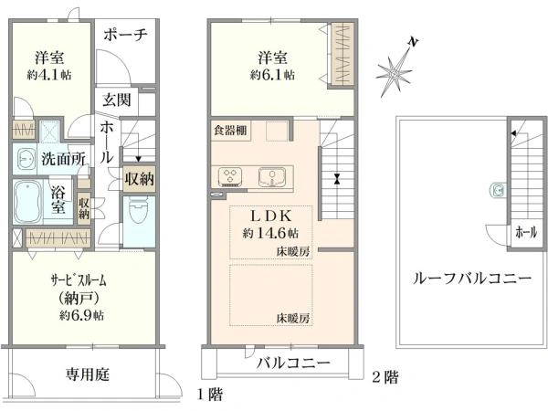 | その他面積 | ルーフバルコニー 24.74m2/専用庭 5m2/ポーチ 3.31m2 | ||