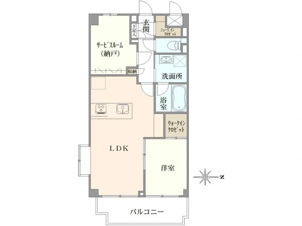 ○間取り :1LDK+サービスルーム+WIC