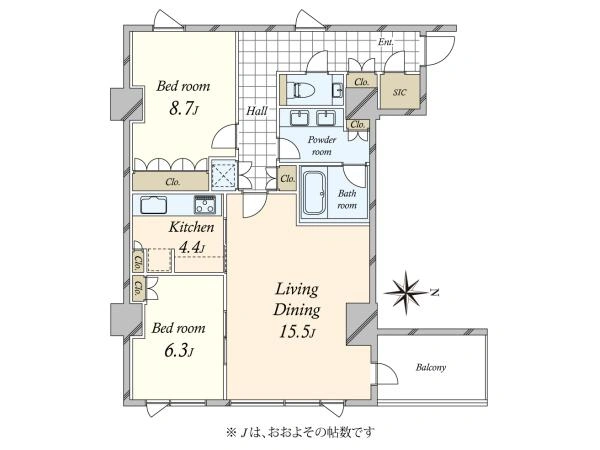 ◇専有面積:88.61平米の2LDK+SIC