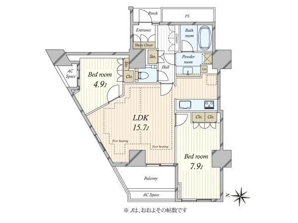 「PROUD」シリーズ 野村不動産(株)旧分譲 約64.96m2×2LDK