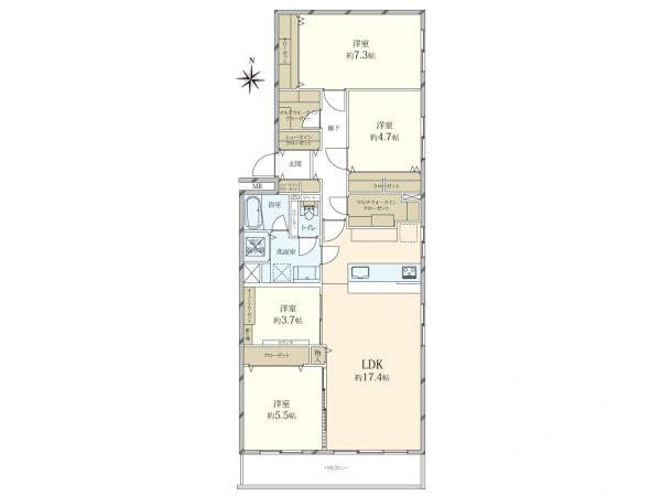 バルコニー面積 7.74m2 向き