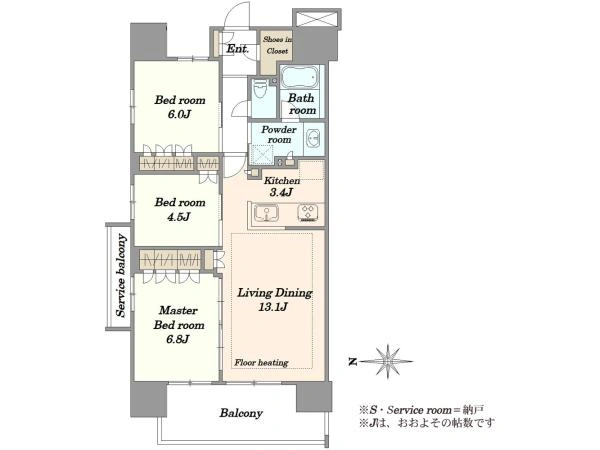 ※サービスバルコニー面積:2.85m2