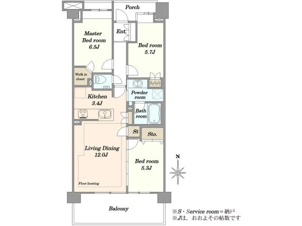 | バルコニー面積 | 12m2 | 向き | 南 |