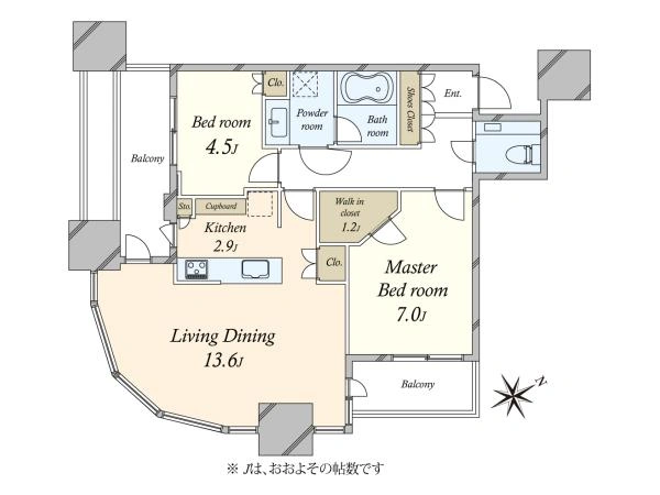 ■専有面積:約65.53m2(2LDK+WIC)