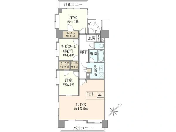 南東向き角住戸