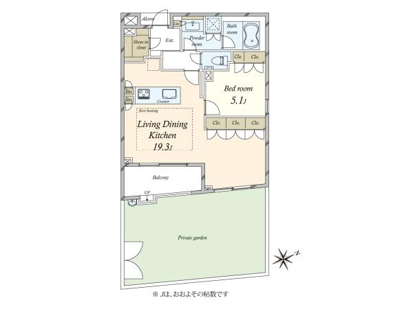 また、お部屋だけでなく、バルコニー+専用庭(38.69m2)という+αの空間もお勧めです。