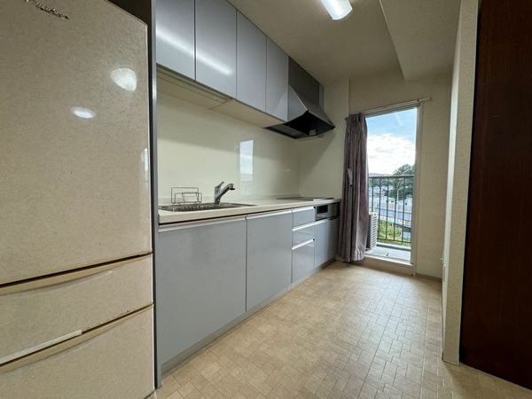 側面が全面ガラス窓のため明るいキッチンです。入居時にシステムキッチンIHを全面リフォームしました。