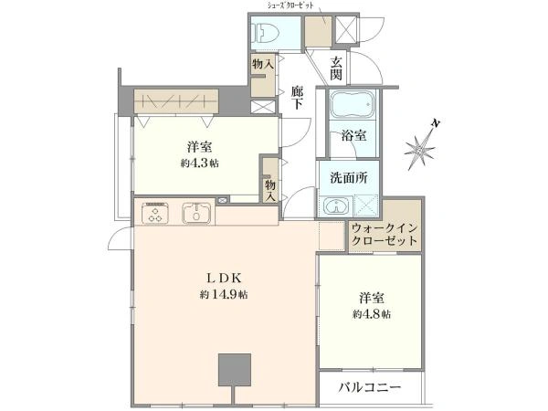 ■ 専有面積:59.59m2 ≪2LDK+WIC≫