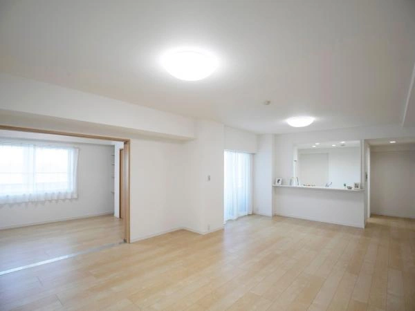 システムキッチン(食洗機付)、ユニットバス(換気乾燥暖房機・追焚機能付)、洗面化粧台、洗濯パン、タンク一体型トイレ、フローリング、ビニルタイル、クロス(全部)、建具(全部)、照明器具設置、カーテンレール、レースカーテン、エアコン1基設置、網戸張替え、玄関収納、クリーニング