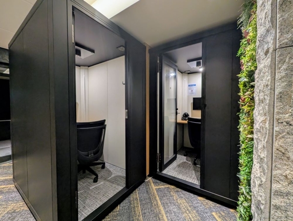居住者であれば利用できるマルチワークラウンジ(無償)、その中にプライベートブース(2か所・無償)、バリアフリートイレがあります。気分転換に、マルチワークラウンジを時々利用しています。テレワーク時は、マルチワークラウンジを利用していますが、集中できる環境があり、助かっています。