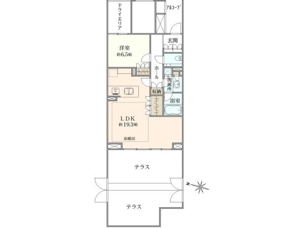 間取り 1LDK+ドライエリア+テラス+専用テラス