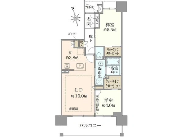 | 間取り | 2LDK+ウォークインクローゼット | ||